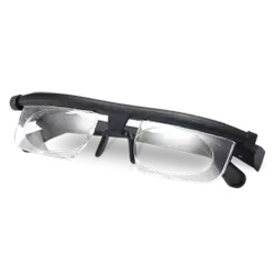A pair of adjustable-focus reading glasses with independent left/right dials. Turn the dial until text pops into focus at the distance you’re using—phone, paperback, recipe stand, label, craft bench—and repeat for the other eye. No apps, no charging, no maintenance. Just grab, dial, read.